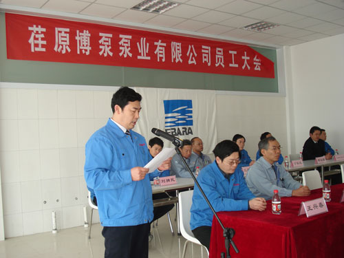 新聞中心 3月1日,在綿綿春雨中,荏原博泵泵業(yè)有限公司員工大會在公司餐廳召開。