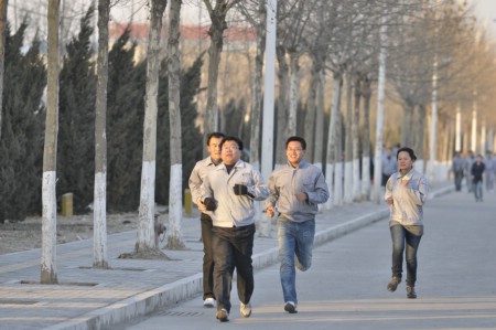 這是公司工會舉辦的第四屆長跑比賽,雖然天氣有些寒冷,但員工們的比賽熱情絲毫不減。比賽開始,工會主席張玉琴為大家鼓舞動員、講解規(guī)則,之后由副總經(jīng)理王興春發(fā)令比賽開始,比賽過程中大家奮勇拼搏,爭先恐后,都努力將自己堅強的一面展示出來。經(jīng)過激烈的角逐,生產(chǎn)部的楊大帥、翟海波,營業(yè)部的霍宏越取得男子組前三名,女子組的前三名分別是研發(fā)部的高俊娟、質量部的張洪蕓和生產(chǎn)部的李芹。