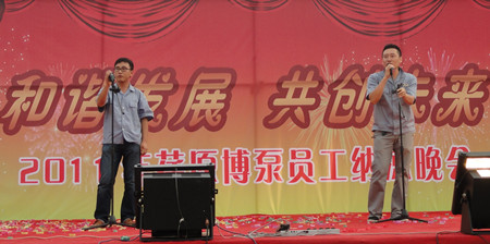 舞蹈《開門紅》寄托著荏原博泵員工對公司發(fā)展前景的美好期盼,展示了公司女職工的風(fēng)采。20多名復(fù)員軍人用一首《咱當(dāng)兵的人》抒發(fā)了他們保家衛(wèi)國、貢獻企業(yè)的豪情與壯志;研發(fā)部、技術(shù)部員工帶來的歌曲《跳起來》,展示了年輕人的青春與活力;質(zhì)量保證部員工在部長岳東海帶領(lǐng)下,演唱了歌曲《相親相愛一家人》,演繹著荏原博泵大家庭的親情、友情。友情樂隊帶來的動感十足的歌曲,更是將晚會的氣氛烘托到高潮。